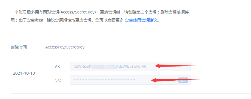 在密鑰管理頁(yè)面查看密鑰,填到優(yōu)采云設置中。