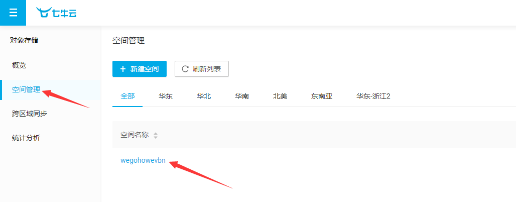 二、空間名稱(chēng),在七牛云控制臺左側欄選擇“空間管理”,在列出的空間中選擇一個(gè)填到優(yōu)采云設置中。