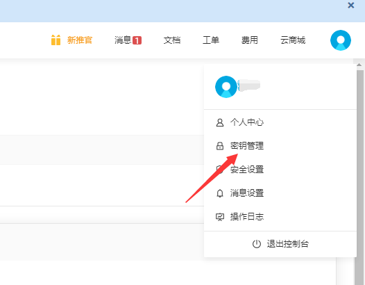 一、AccessKey(AK)和SecretKey(SK)的填寫(xiě),先在七牛云控制臺,鼠標指向右上角頭像,在彈出的菜單中點(diǎn)擊“密鑰管理”菜單。