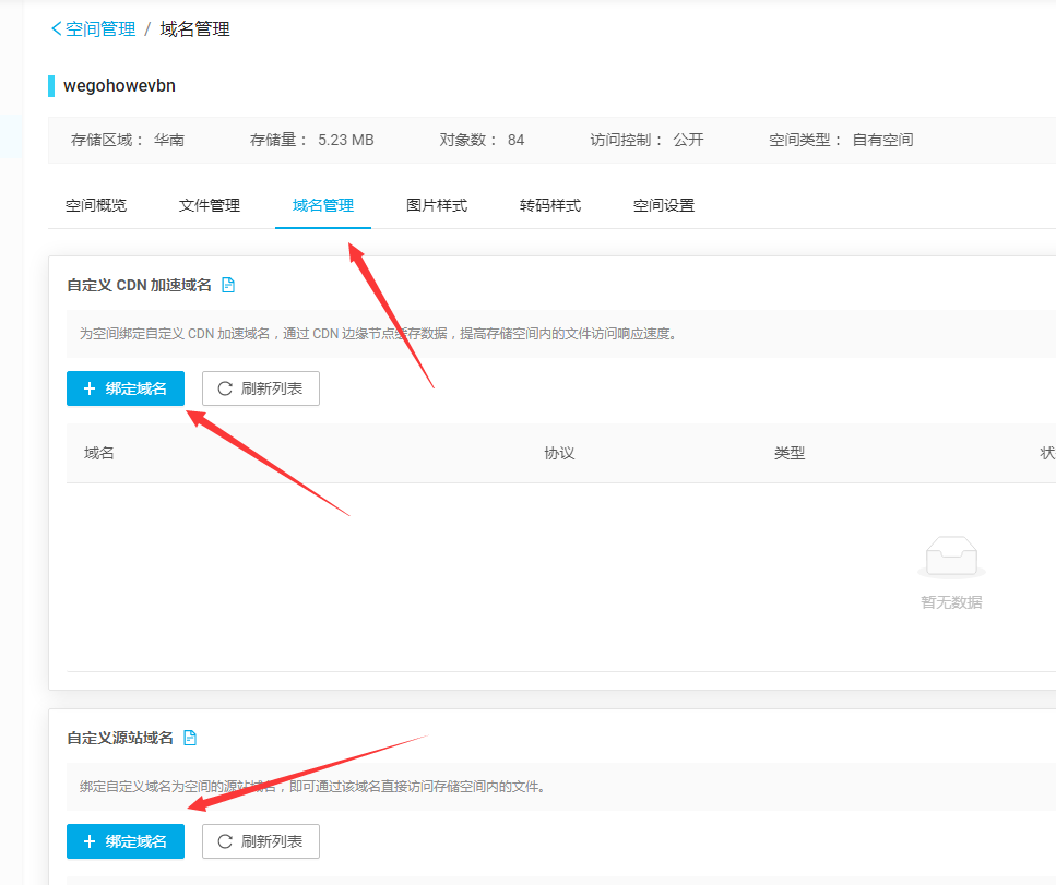 五、訪(fǎng)問(wèn)域名,是指圖片上傳成功后,需要生成一個(gè)外網(wǎng)可以訪(fǎng)問(wèn)的圖片網(wǎng)址,替換文章中原來(lái)的圖片網(wǎng)址。在存儲空間管理頁(yè)面,選擇“域名管理”,然后查看自定義 CDN 加速域名或自定義源站域名,并把域名填到優(yōu)采云設置中,注意只填域名,不需要加"http://"或者"https://"。