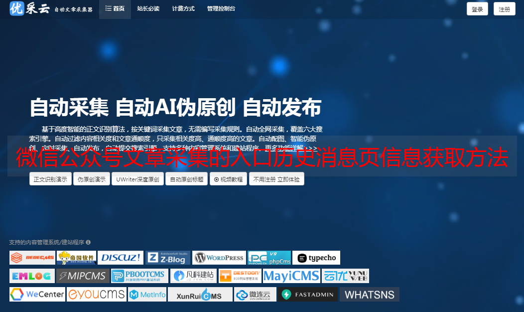 我解釋了如何在微信公眾號文章采集的進(jìn)入歷史消息頁(yè)面上獲取信息。有需要的朋友可以參考此內容。