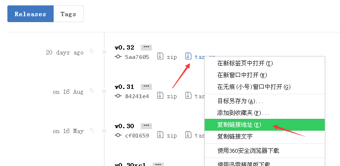 進(jìn)入https://github.com/openresty/headers-more-nginx-module/releases尋找你所要的版本鏈接,我使用的是當前最新版v0.32。https://github.com/openresty/headers-more-nginx-module/archive/v0.32.tar.gz?