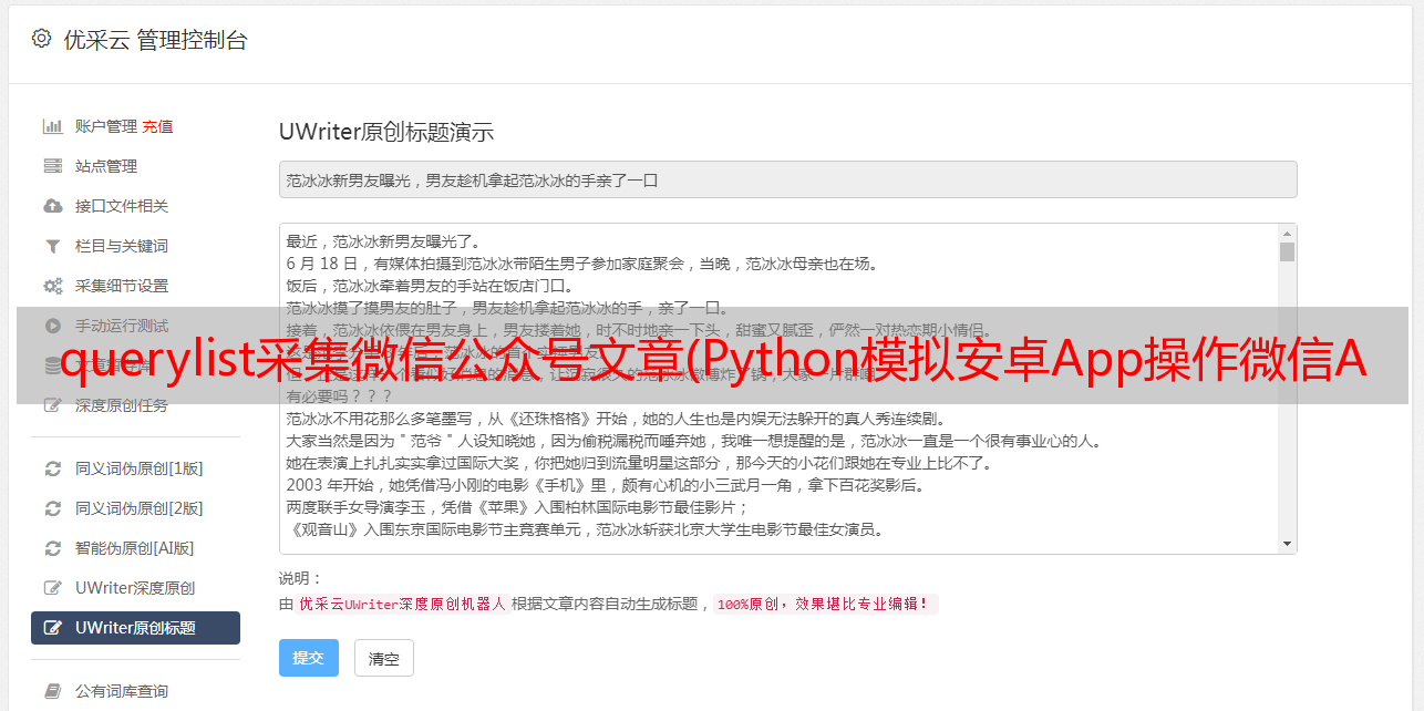 querylist采集微信公眾號文章(Python模擬安卓App操作微信App的方法(詳見(jiàn)代碼介紹))
