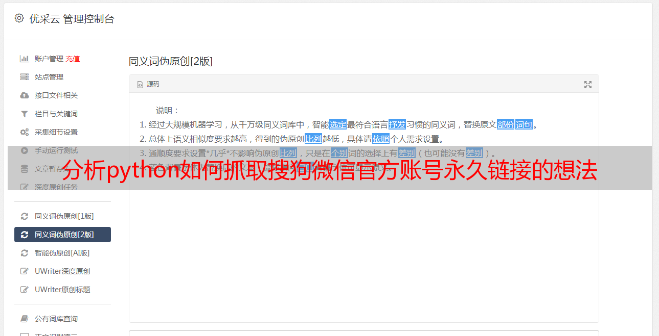 優(yōu)采云 發(fā)布時(shí)間: 2020-08-05 21:08本文主要介紹關(guān)于python如何抓取Sogou微信官方帳戶(hù)的永久鏈接的思想分析. 編輯認為這是相當不錯的. 現在,我將與您分享并提供參考. 讓我們跟隨編輯器看一下.