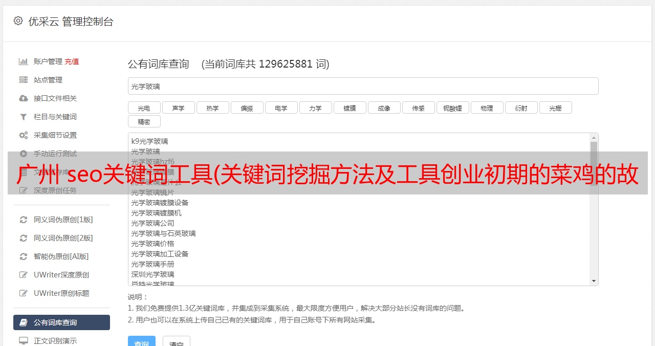 優(yōu)采云 發(fā)布時(shí)間: 2021-09-30 18:27廣州 seo關(guān)鍵詞工具(關(guān)鍵詞挖掘方法及工具創(chuàng )業(yè)初期的菜雞的故事)