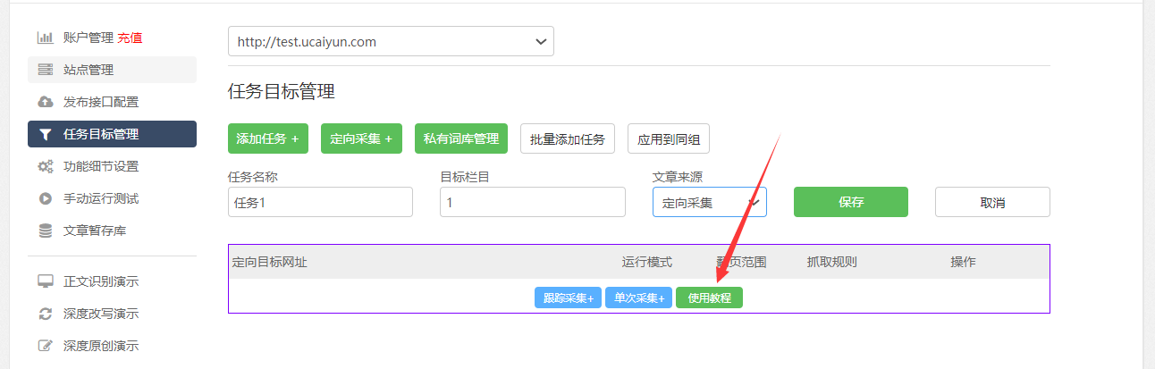 優(yōu)采云圖文教程 Step 3 任務(wù)目標設置 自媒體用戶(hù)