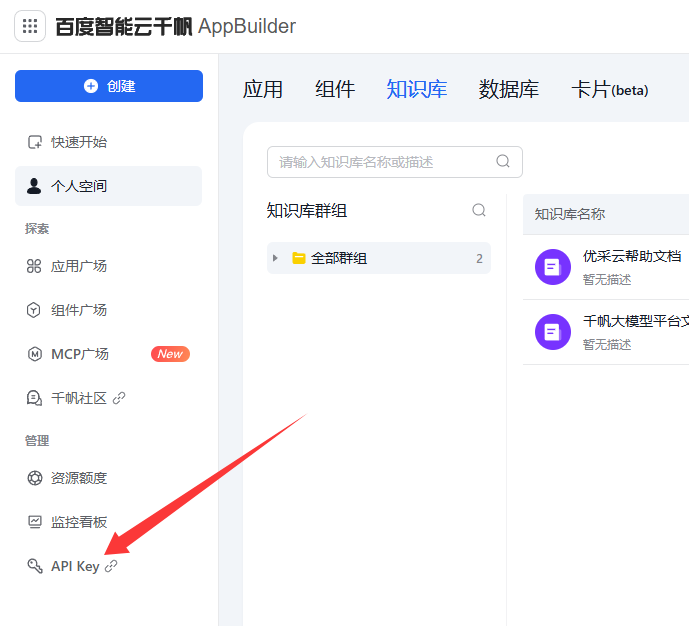 API Key在左側欄API Key管理頁(yè)面獲?。?/p>