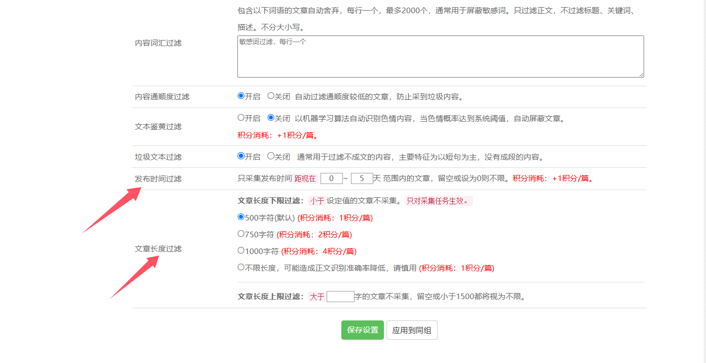 4. 謹慎使用過(guò)濾設置,尤其是文章長(cháng)度過(guò)濾、發(fā)布時(shí)間過(guò)濾、關(guān)鍵詞防重復等。
