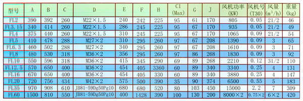 型號含意:例:FL20是指FL空氣冷卻器,20是指換熱面積(寸)。