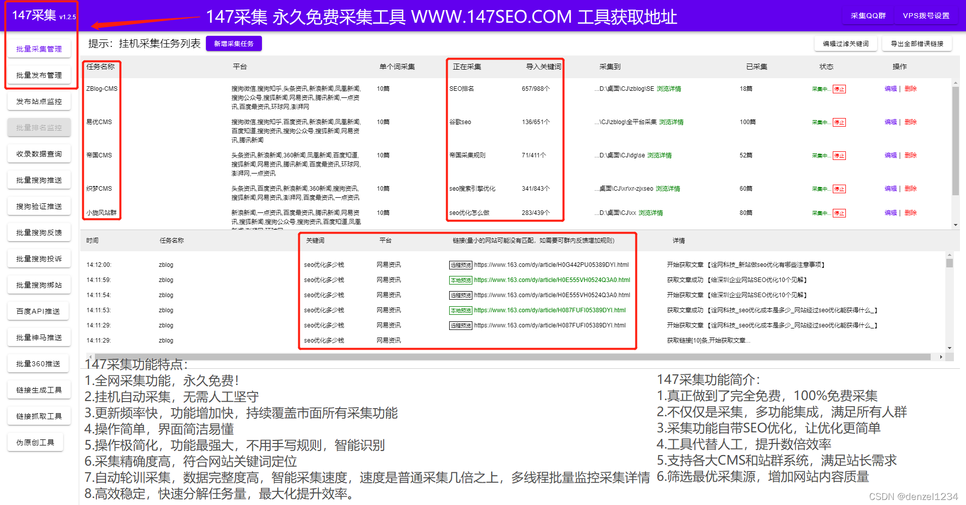 5、自動(dòng)批量掛機采集,無(wú)縫對接各大cms發(fā)布者,采集偽原創(chuàng )并自動(dòng)發(fā)布推送到搜索引擎
