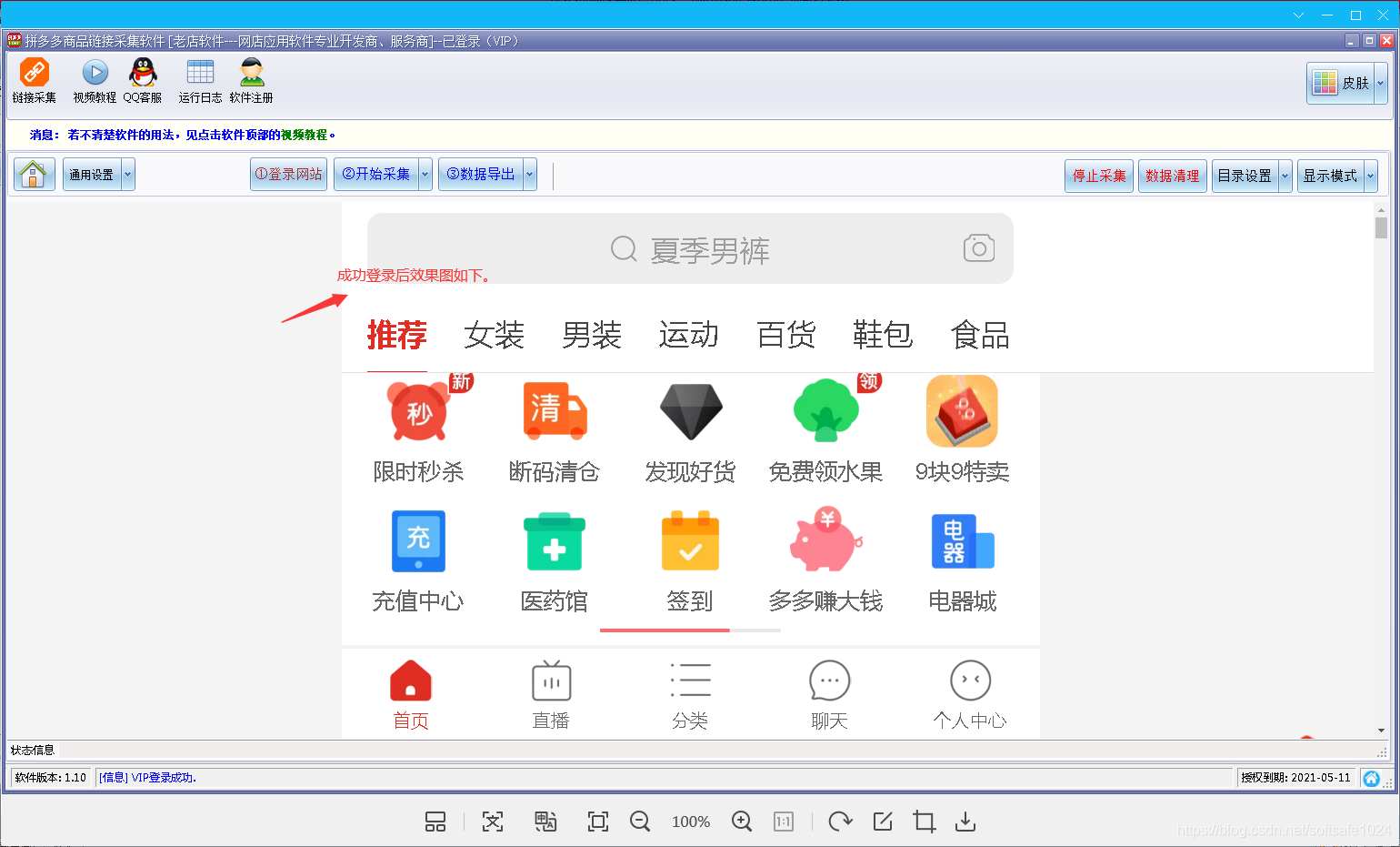 登錄成功后,界面會(huì )顯示拼多多的第一頁(yè),如下: