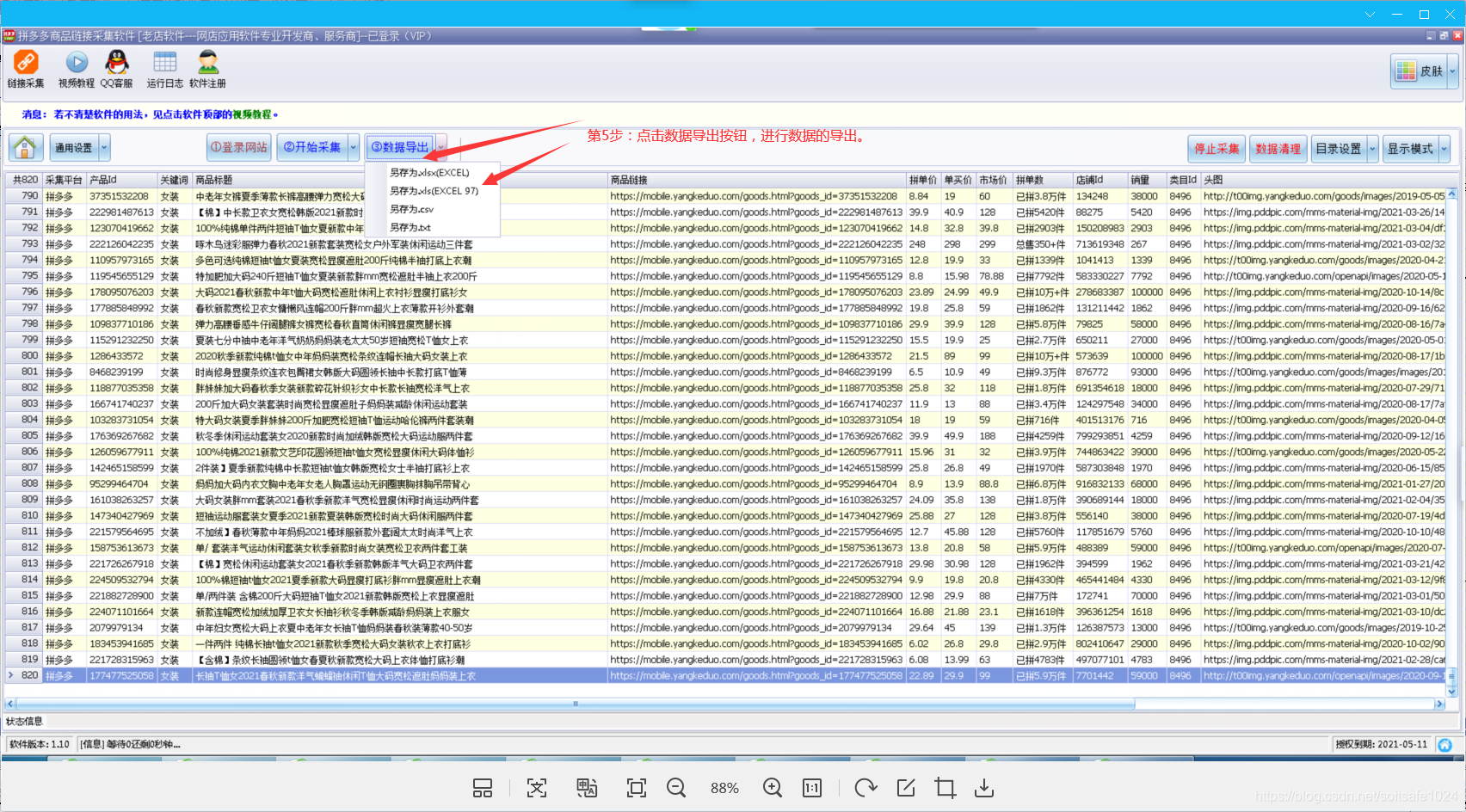 第五步:數據導出