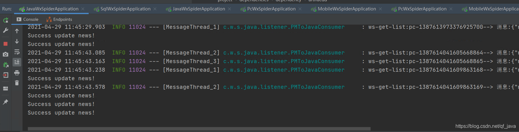 在Debgu模式下,我們可以看到我們已經(jīng)獲取到了首頁(yè)最新的文章欄下所有文章的URL地址。