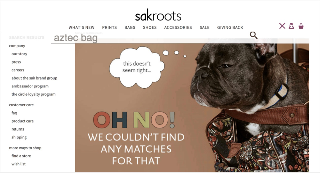 如果搜索算法找不到貼近搜索詞的產(chǎn)品, 就會(huì )返回略讓人失望的無(wú)結果頁(yè)面。但這個(gè)頁(yè)面同樣值得優(yōu)化。例如, 可以給客戶(hù)推薦一些類(lèi)似品類(lèi)的商品, 呈現現在熱賣(mài)的商品, 而不是只返回一個(gè)光禿禿的空白頁(yè)。