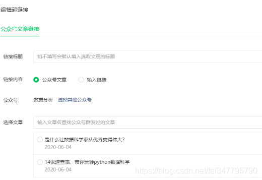 我們通過(guò)微信公眾平臺網(wǎng)絡(luò )版圖形消息中的超鏈接獲得所需的界面