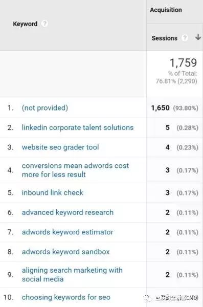 在過(guò)去幾年中,Google和Bing都推出了加密搜索,GoogleAnalytics等分析工具都不再提供這些數據。相反,你會(huì )看到許多關(guān)鍵字數據顯示為“(未提供)”。